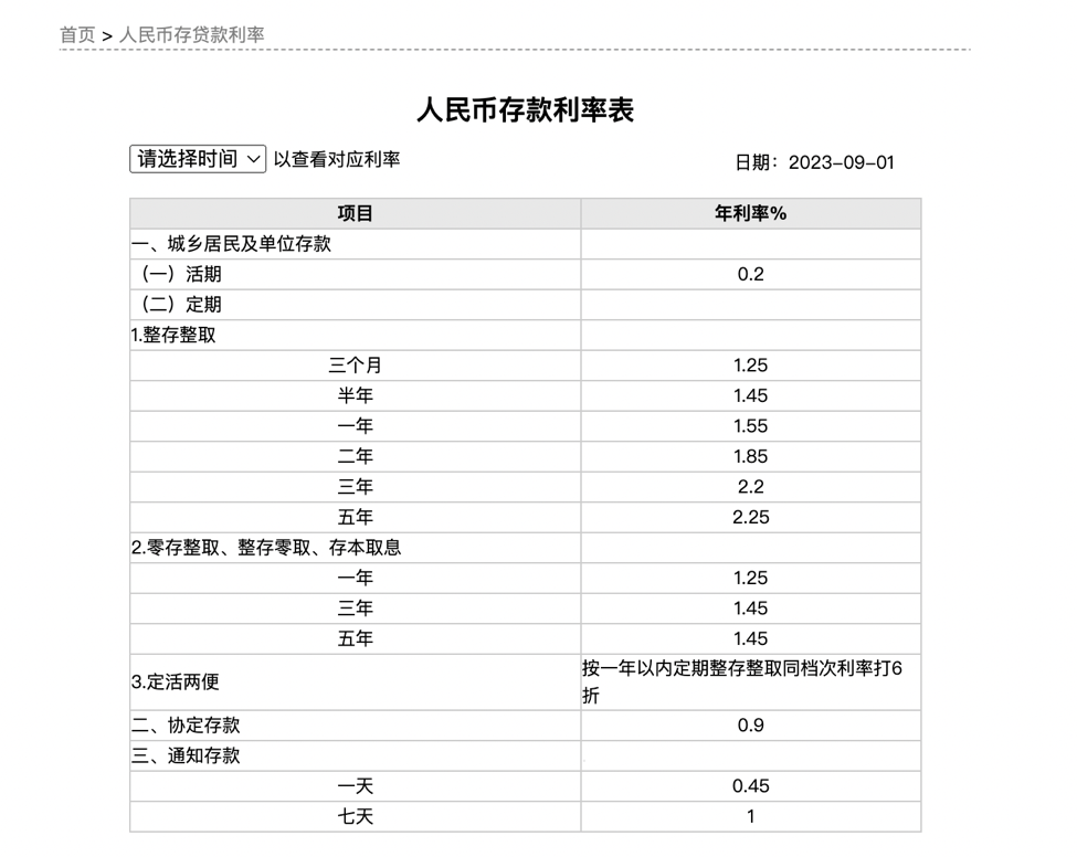 根据该行上一次更新的情况,目前人民币存款挂牌利率如下。