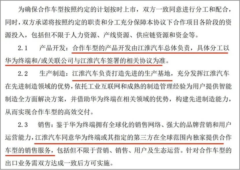 12月1日,江淮汽车公告,与华为终端有限公司签署《智能新能源汽车合作协议》,合作车型的产品开发由江淮汽车总体负责,具体分工以华为终端和或关联公司与江淮汽车签署的相关协议为准。