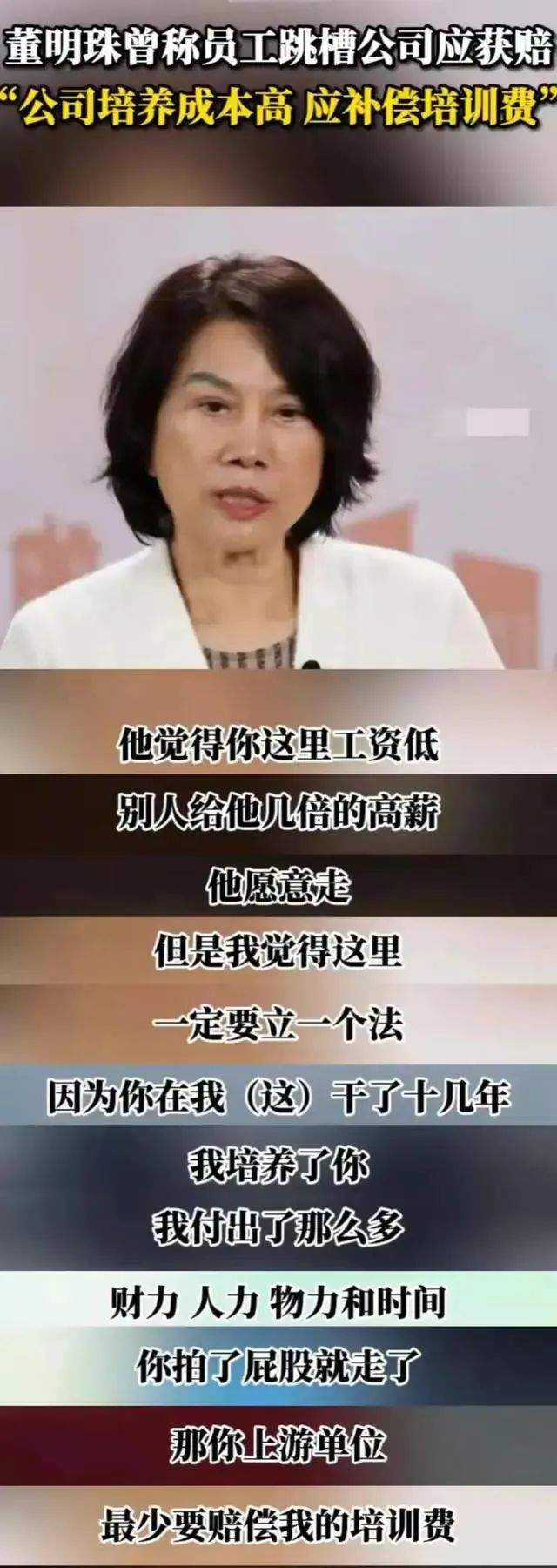 为此,董小姐甚至还自创了一套“董氏跳槽法”:因为你在我这里干了十几年,我培养了你,我付出了那么多财力人力物力和时间,你拍了屁股就走了,那你下一个单位最少要赔偿我的培训费。