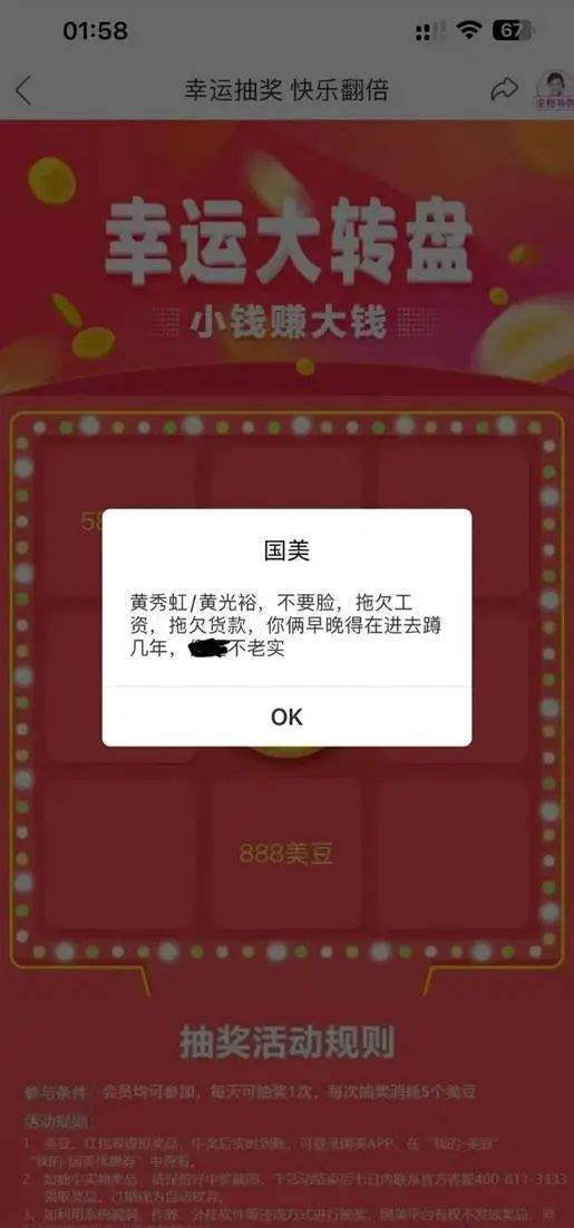 今年国美的员工也同样没有惯着自己的老板,面对今年内部依然发不出工资的窘境,有国美员工直接在自家APP里弹窗“问候”了一下老板。