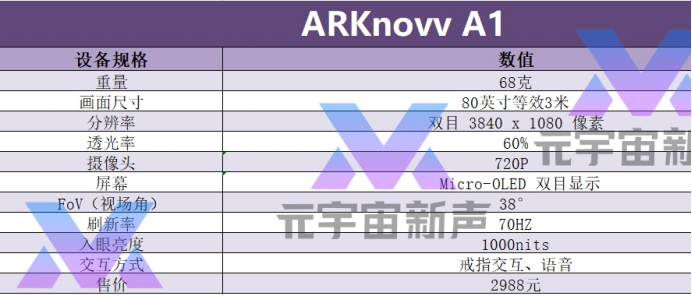 ARknovv A1 重量仅有 68 克,在外观上采用了接近跑车前脸的流线型设计,搭配蝶翼镜片使其在日常佩戴体验接近大框墨镜,同时也为用户提供了更大的可视区域。