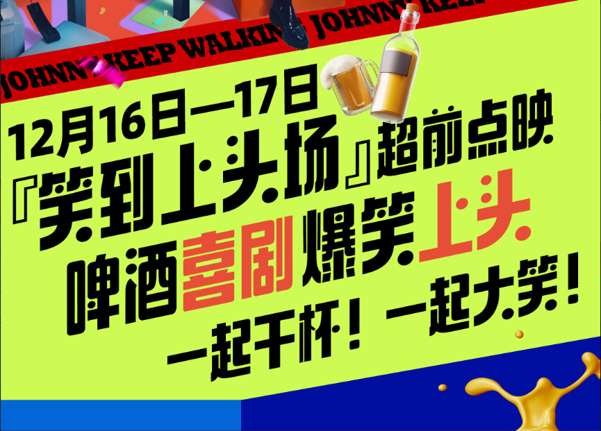 《年会不能停!》(以下简称《年会》)做了“啤酒场”,还自称“啤酒喜剧”,是其他几部影片中“仪式感”最完整的一个。在12月16日至17日的“笑到上头场”超前点映里,有仅19.9的优惠票价,观影还送青岛啤酒。