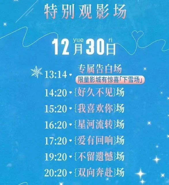 一个额外的问题是,和票补动作一同进行,意味着总体规模势必有限,特殊观影场次变成了需要“抢”才能拥有的少数观众特权,也就没办法转化为更大范围的购票动机。而《一闪》的“下雪场”在许多影城自发加入之后,普通观众的选择余地也变多了,才有机会把“仪式感”纳入购票决策中。