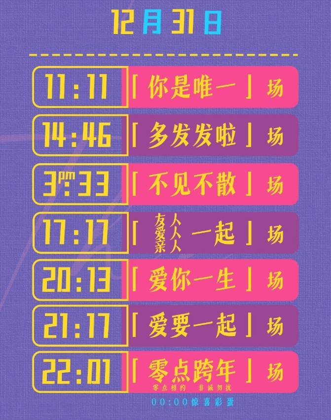 除了在具体物品上找思路,给不同的场次进行花里胡哨的命名,也成为了每个片方“必卷之地”。