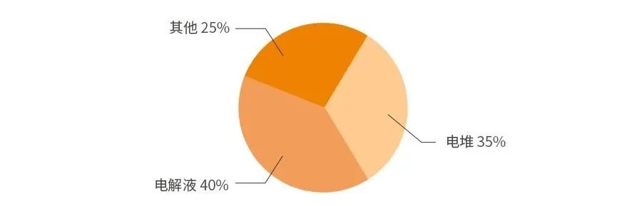 全钒液流电池由电解液、电堆和其他部件组成。其中电解液、电堆(隔膜、电极、双极板)是全钒液流电池的核心部件,其成本分别占总成本的四成左右。![]()