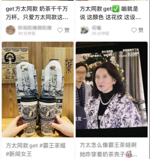 12月,霸王茶姬又蹭到了《新闻女王》的热度,上了小红书的热榜,网友又一窝蜂地去打卡方太衣服同款。近日,周边猫领结和猫爬架又火了一把。