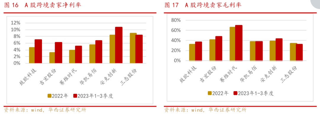 另一类是通过自建平台进行销售的独立站卖家,这类里按照特色划分又能出来两个小类,一个是品牌属性较强的卖家,如卖充电器等各类数码配件的安克创新,2023上半年独立站收入占线上总收入的9%;另一个是供应链能力较强的泛品卖家,TEMU、SHEIN、速卖通、Tik Tok Shop等都属于。