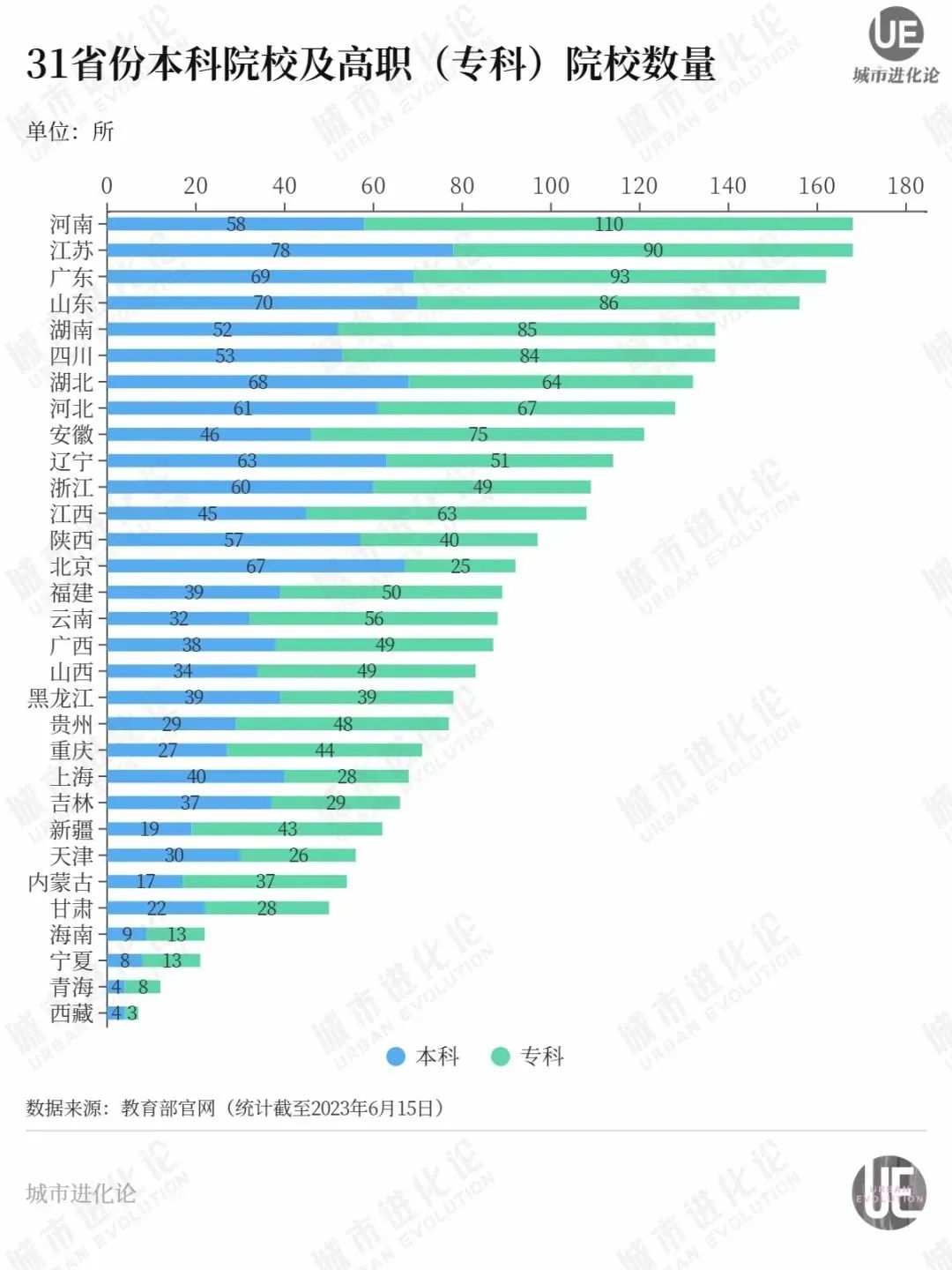 跟河南、河北“高校总量大、本科占比极低”相比,山东不仅高校数量(156所)排在全国前四位,本科高校数量(70所)更是高居全国第2位,仅次于江苏。