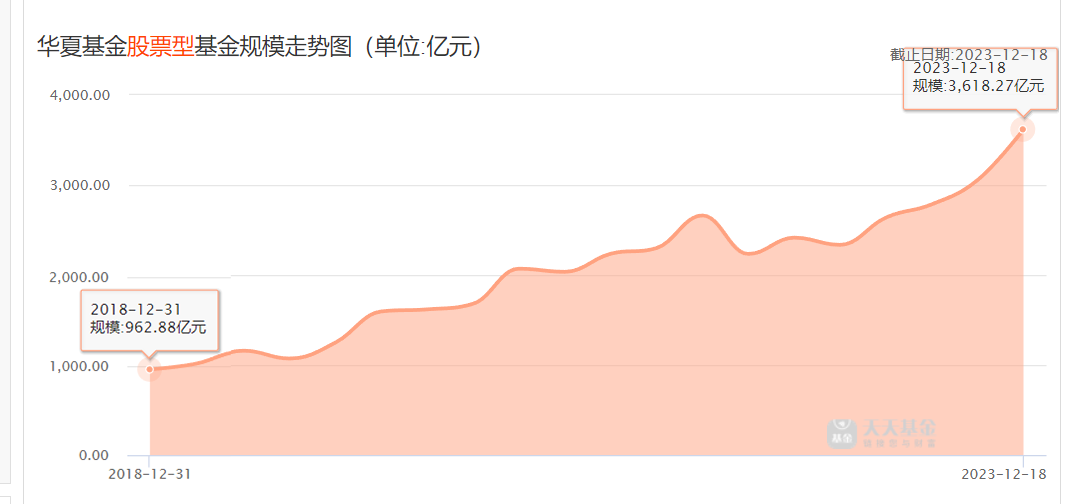 天天基金网数据显示,截至2023年12月18日,华夏基金公司旗下,指数型基金3518亿,混合型基金1535亿,QDII基金787亿。