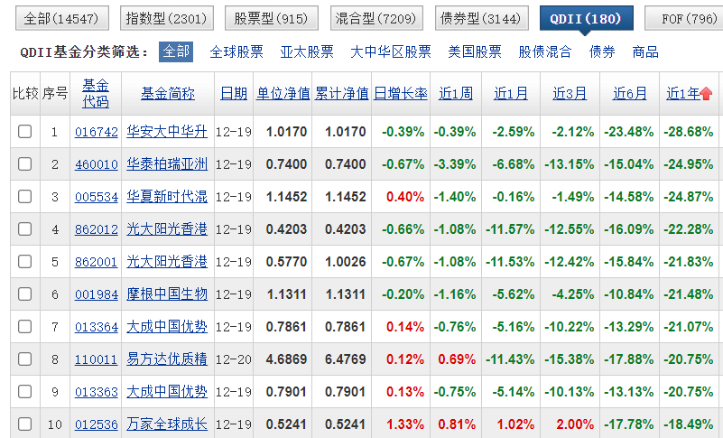 与此同时,在QDII近1年业绩倒数TOP10中,也出现了华夏基金的身影,华夏新时代混合人民币(QDII),排在倒数第3名,近1年下滑24.87%。