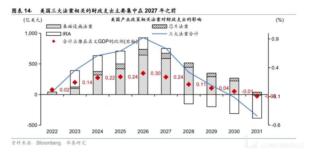 人口供给冲击通过移民阀门的放开拉逐步解决,人口需求和预期的冲击通过直升机撒钱来解决,而产业和基础设施暴露的短板,民主党的处理方法简单粗暴:财政赤字 + 产业法案。