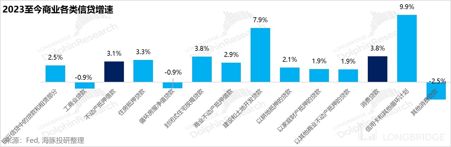b) 建筑开发行业:以 “土地 “为基础的开发贷背后增长一部分因素与美国的基础设施重建和制造业回流相呼应,净增了 1600 亿美金;