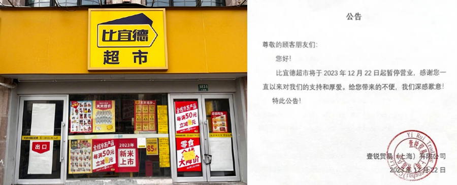 12月23日,主打硬折扣的低价超市比宜德发布公告,宣布自12月22日起暂停营业。据悉,比宜德自2016年进入中国区以来一直处于整体亏损状态,截至暂停业务前的161家门店中有约80家门店已经实现门店层面盈利。今年上半年,比宜德董事会已经在洽谈出售业务的事宜。虽然一直有潜在购买方谈判,但依然没有确定收购。