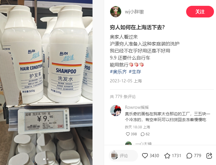 这就不仅激发了消费者想尝新、尝鲜的冲动,还让消费者在这种环境中对“定制”的自有品牌有种性价比和质价比同时兼顾的体验,以至于在“低价”+“高质”面前,无论是中产、新中产还是白领、新白领,统统把持不住。这一点,从小红书上关于奥乐齐的各种晒单就可见一斑。