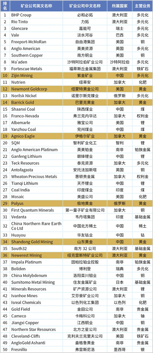▲2022年全球矿企50强(以市值排名),来源:《全球矿业发展报告2023》