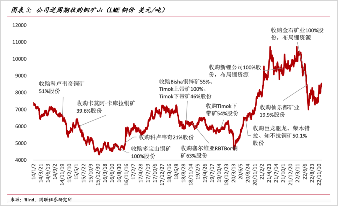 在价格波动剧烈,周期明显的矿业江湖打拼,陈景河拥有自己的方法论——“反周期买矿、低风险增储、低成本采矿”。