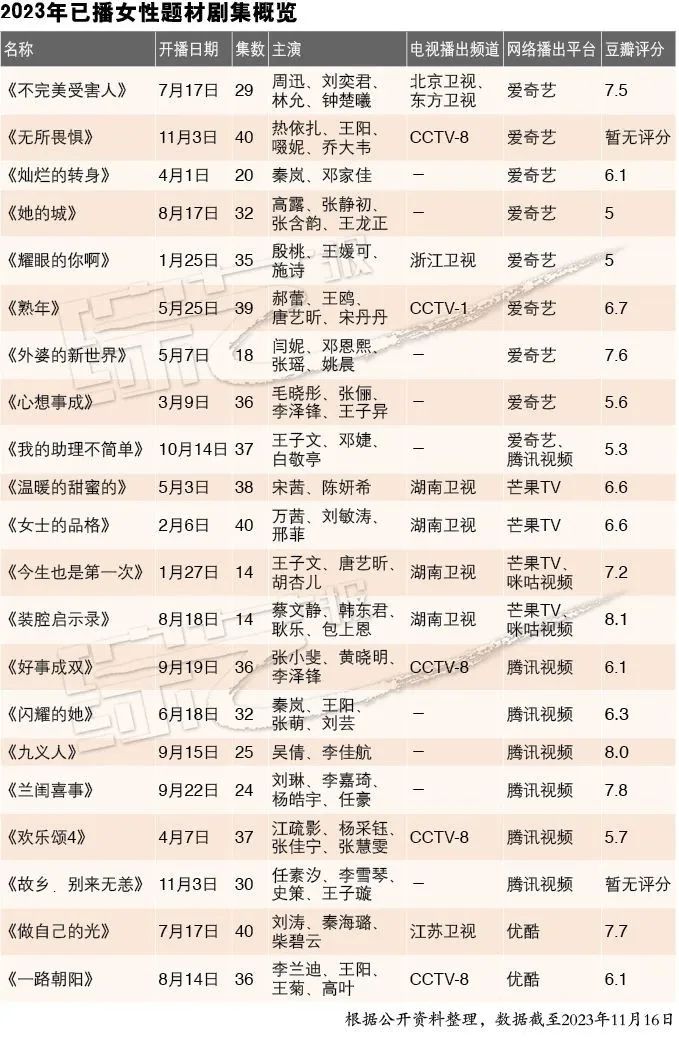 不过,被淘汰的只是那个时代的“大女主剧”,而非“大女主”这个标签。或者说,在“大女主剧”成为剧集类型的固有名词之后几年,“独立女性”或“30+女性”的标签,短暂地代替了原本“大女主”的语义功能。