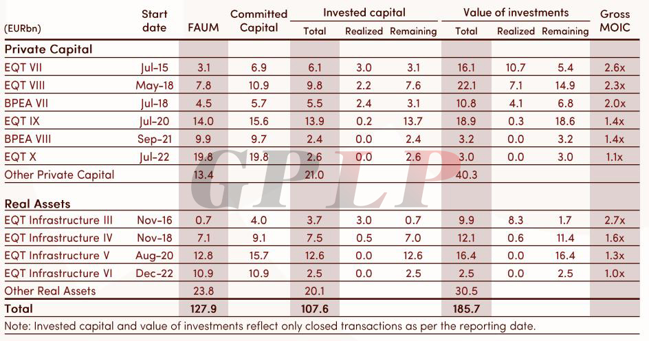 EQT旗下主要基金投资记录(截至2023年9月30日,数据来源:EQT财报)