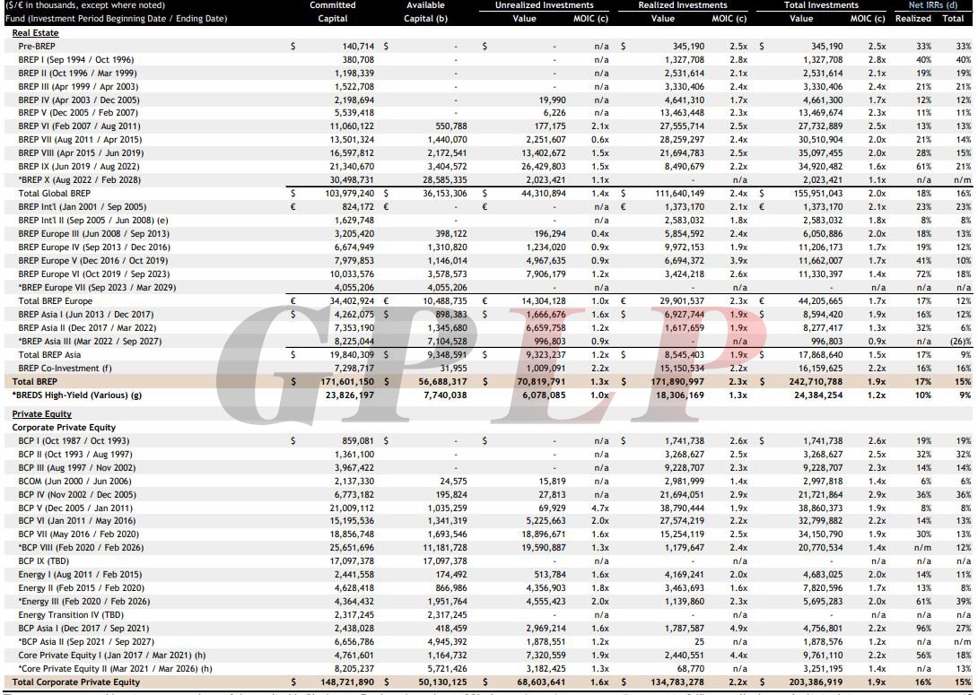 黑石旗下基金投资记录(截至2023年9月30日,数据来源:黑石财报)
