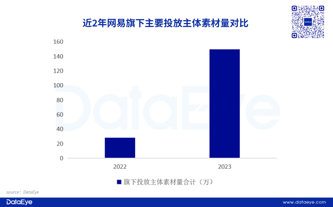 但是旗下产品《蛋仔派对》年底大规模投放抢量,单日投放素材超过20万组,成为网易今年投放素材量最多产品,占比超过网易总投放量的50%