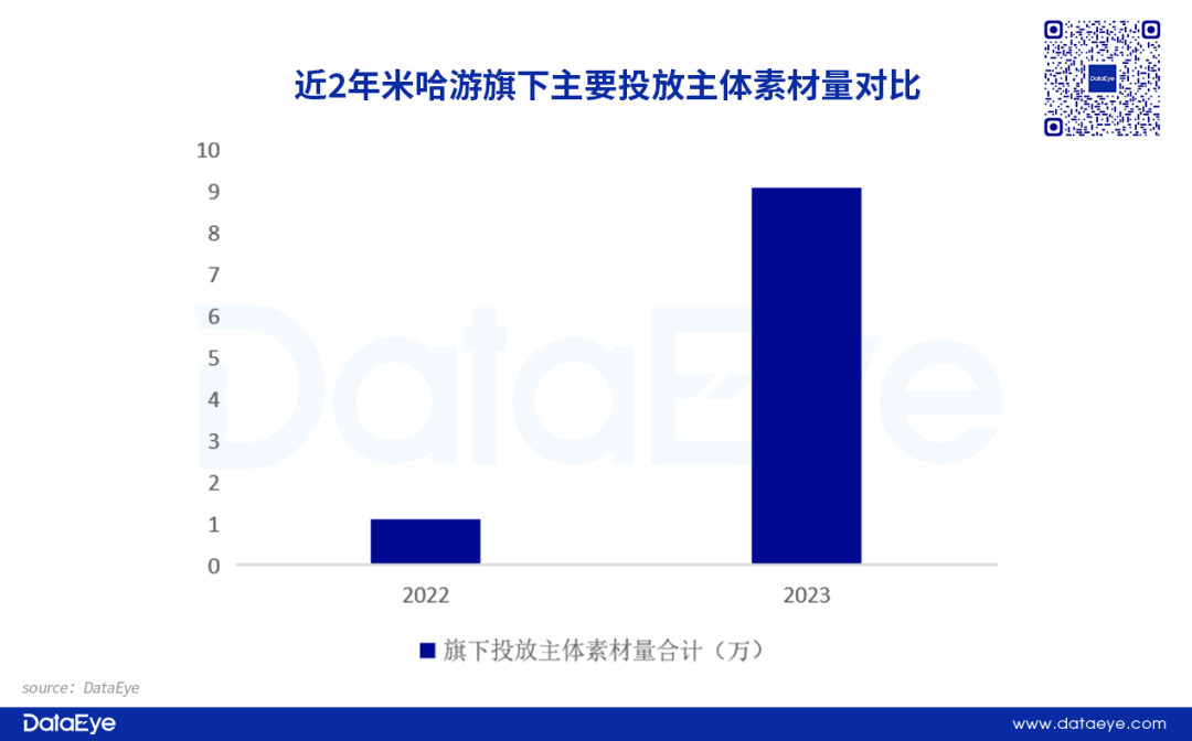 从素材角度来看,“米哈游”式素材类型为主,但愈发重视品效结合。