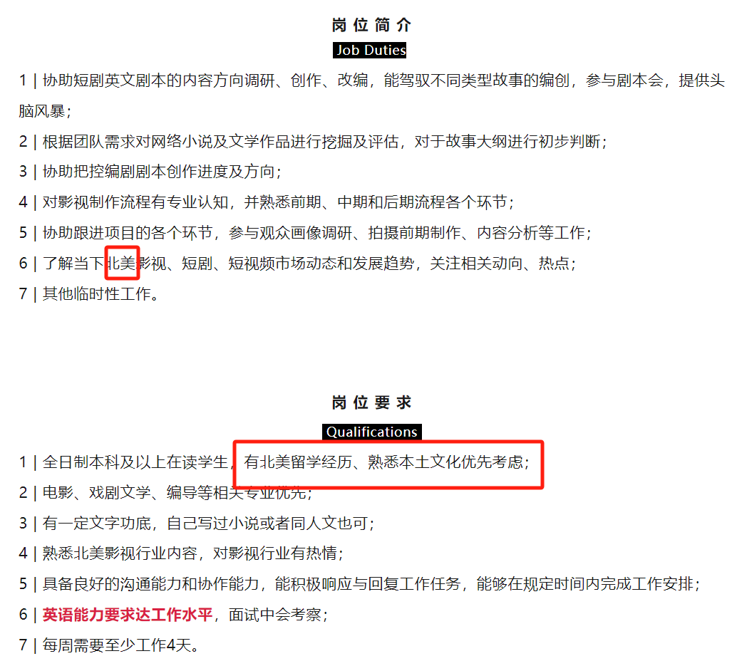 今年3月,网易有道国际部门为旗下出海短剧招募演员。网易有道也曾发布国际短剧业务实习生、海外短剧业务助理实习生、短剧翻译剪辑实习生等多个招聘岗位。从市场来看,网易对北美市场较为感兴趣。