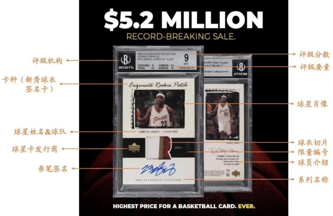 收藏卡元素介绍,注:卡面元素丰富度、稀有度、评级认证情况、IP本身都会影响收藏卡的价格|图片来源:网络