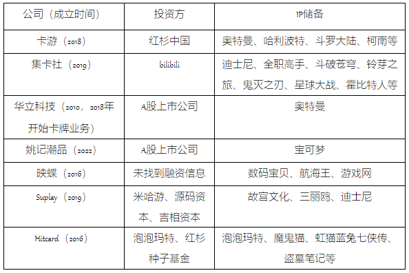 以阅文集团为例,公司很早就将旗下顶流网文 IP 授权给卡游和集卡社等发行商来制作收藏卡,阅文透露,2022 年 IP 相关产品的销售额达到 1 亿元,其中卡牌的占比很高。