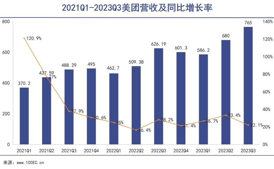 然而不久前美团才交出一份增长不错的财报。报告显示,2023年第三季度美团实现营收764.7亿元,同比增长22.1%;实现净利润35.9亿元,同比增长195.3%;经调整净利润57.3亿元,同比增长62.4%。