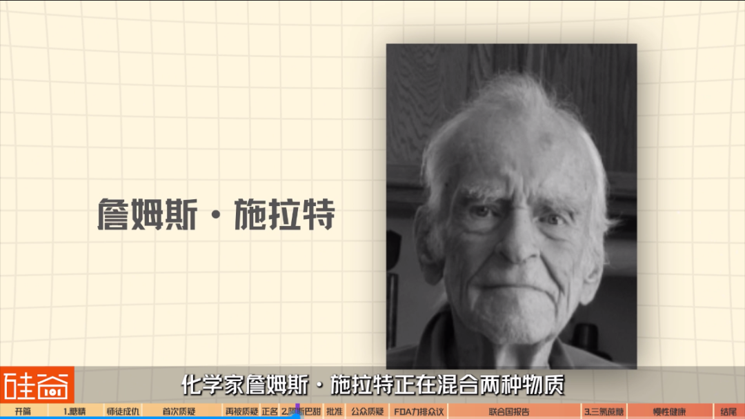 1965年的一天,现辉瑞制药(Pfizer)旗下公司G.D. Searle的实验室里,化学家詹姆斯·施拉特正在混合两种物质:天门冬氨酸和苯丙氨酸。这两种物质都是能够构成蛋白质的重要组成部分,这也是施拉特当时研制胃溃疡药物所需的重要一环。实验过程中,为了更方便地拿起一张称重试纸,他舔了下自己的手指。事后回忆起来,他说到: