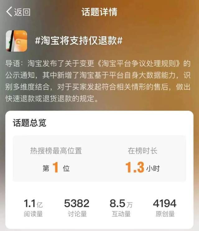 12月27日,淘宝和京东支持“仅退款”的消息接连登上微博热搜。