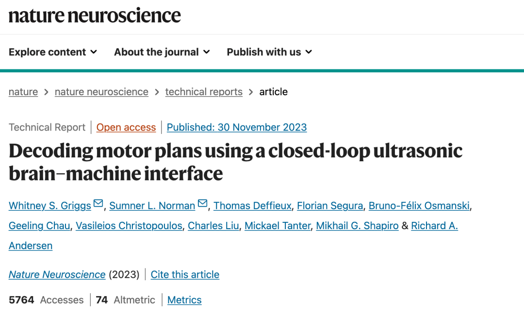 - [2] GRIGGS W S, NORMAN S L, DEFFIEUX T, et al. Decoding motor plans using a closed-loop ultrasonic brain–machine interface [J]. Nature Neuroscience, 2023.