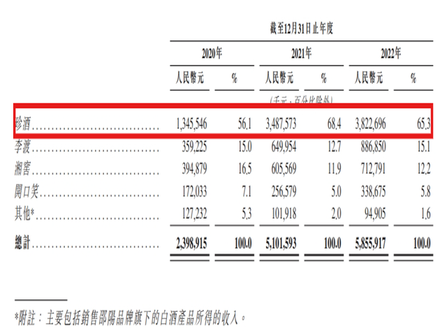 根据招股书,珍酒李渡收入最大的品牌为“珍酒”,珍酒主打次高端酱香白酒,其在2020年-2022年完整三个财年对上市公司的收入贡献平均值超过62%,但珍酒的出产地在贵州遵义,主要销售区域也在贵州等地。