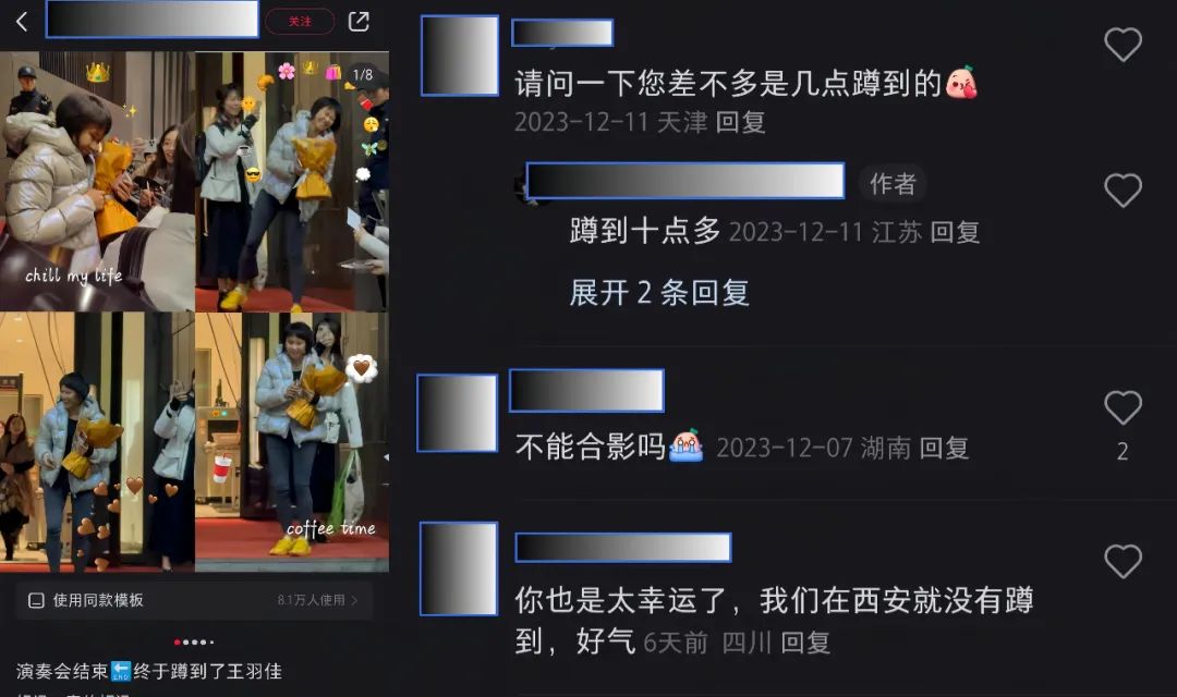 处在旋风的中心,现场观众的热情势不可挡。90后女孩琦琦加价680元才买到了首场深圳站的票,她在接受采访时表示,“喜欢钢琴,也喜欢王羽佳身上的潇洒劲儿,多花点钱也觉得心甘情愿”;在小红书上,许多网友会在演出结束后等在场外,为王羽佳送花,找她要签名,跟她合影,并感叹“自己真是太幸运了”。