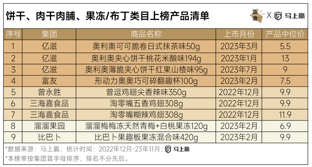 饼干、肉感肉脯、果冻/布丁类目上榜产品清单