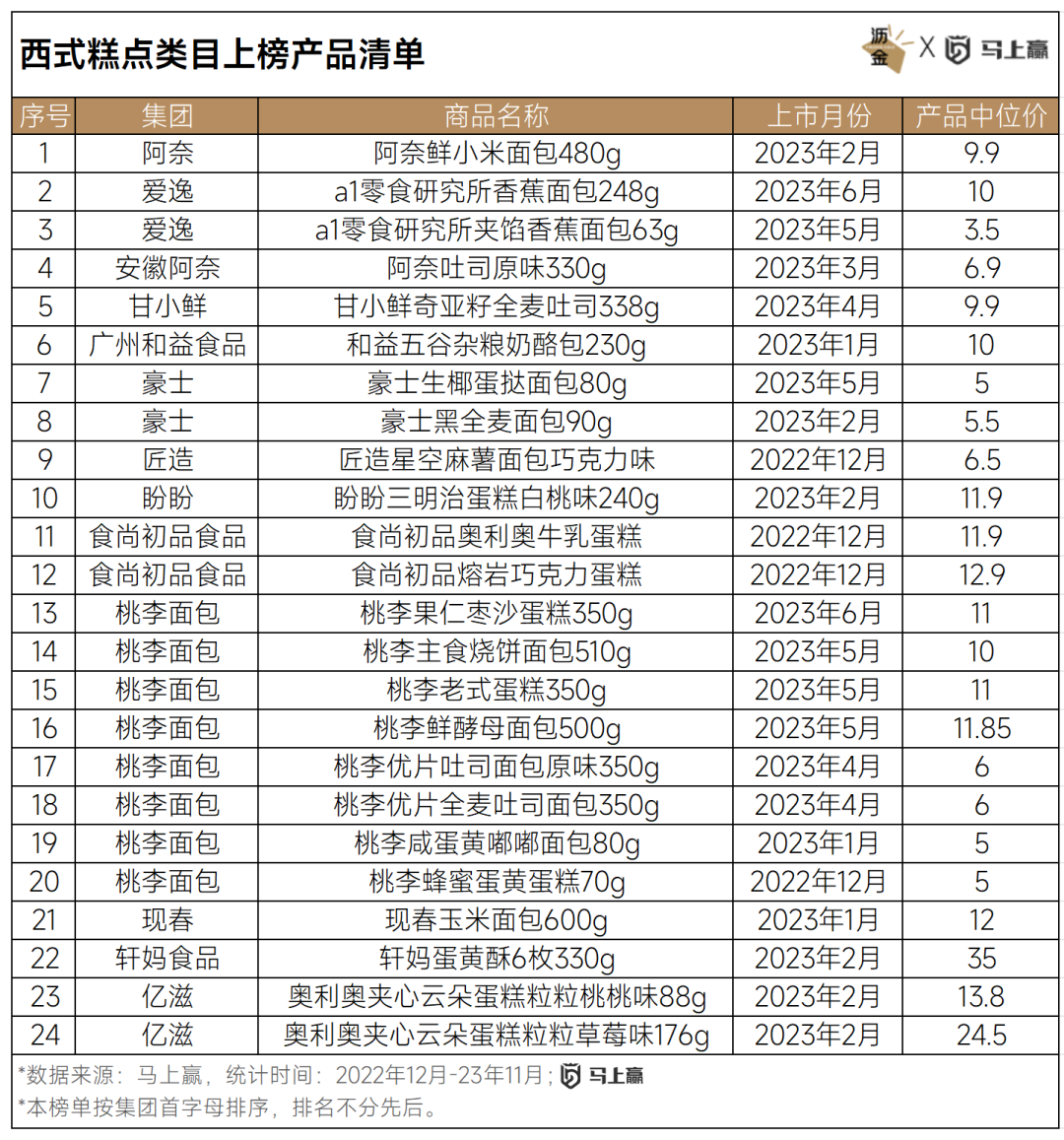 可以看到,榜单中西式糕点的新品多由头部品牌推出,新品牌的产品创新能力有待加强。