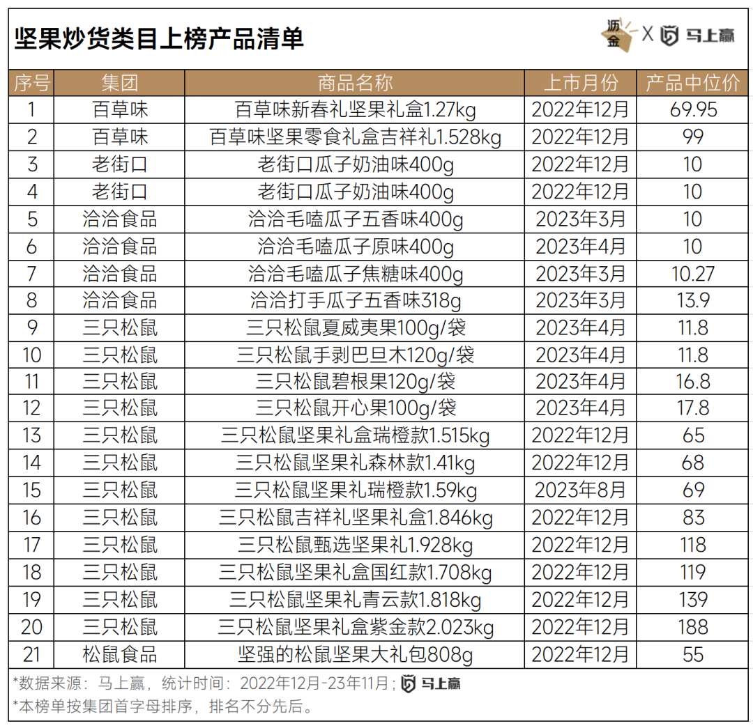 坚果炒货市场目前头部品牌格局稳定,行业壁垒不高、同质化竞争严重,品牌通过推陈出新保持市场活力,提高增长。