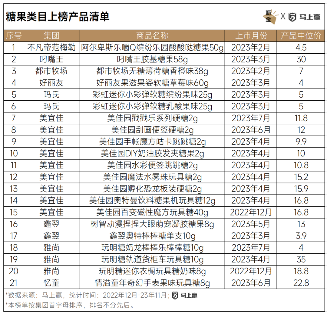 再来看糖果类目入围销售额TOP100榜的新品有哪些。