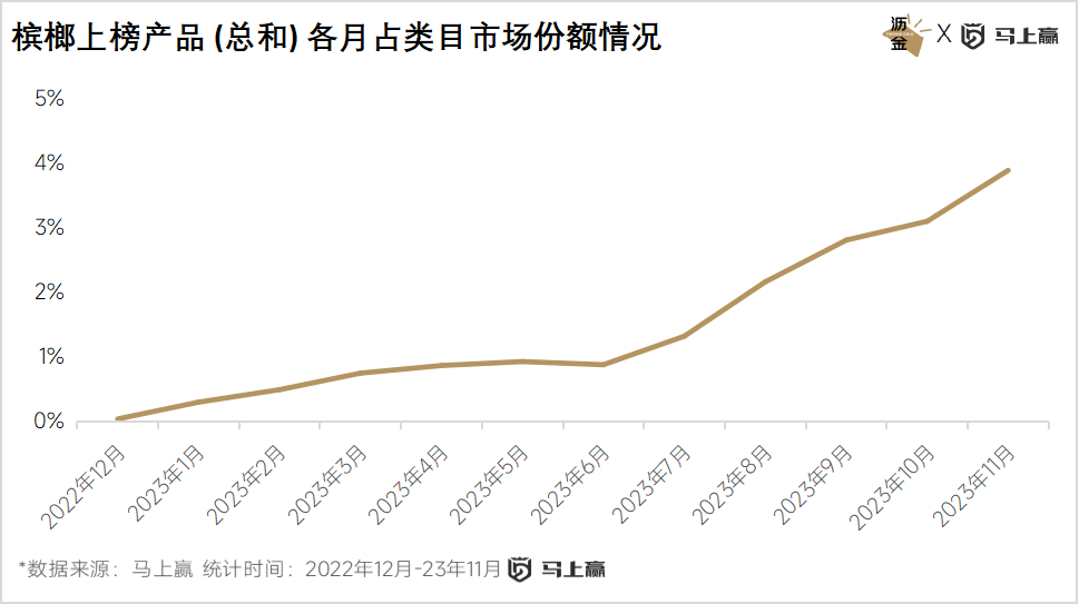 槟榔上榜产品(总和)各月占类目市场份额情况
