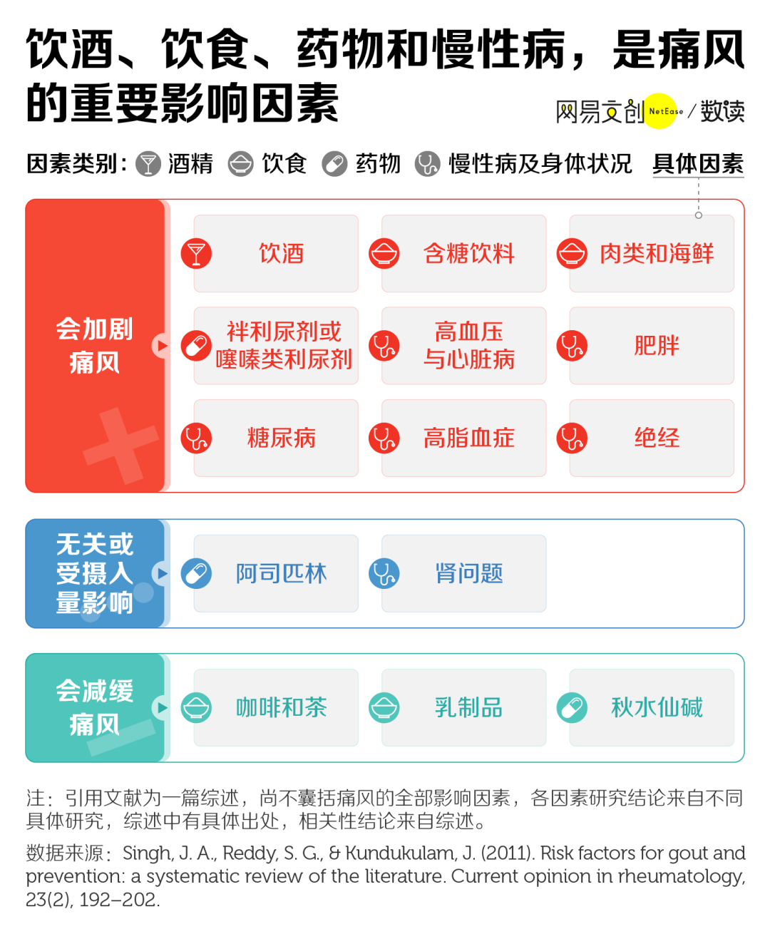 而对于想避免痛风的年轻人来说,吸烟、家族史和代谢综合征这几个危险因素更值得警惕 [15]。