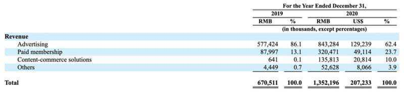 知乎IPO招股书中的营收部分