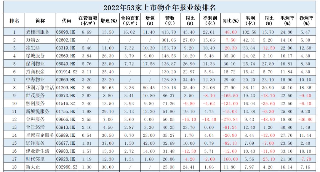 到2022末,上市的物业企业达到53家,这53家物业企业,大部分交出了“盈利”的答案。