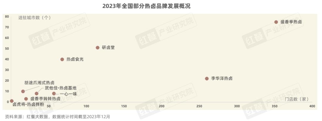 红餐大数据显示,截至2023年12月,盛香亭热卤已开出了近350家门店,进驻超70个城市。研卤堂、李华泽热卤亦已开出了过百家门店,进驻超20个城市;起源于深圳的一心一味则深耕社区门店,在当地享有较好的美誉度与较高的知名度。