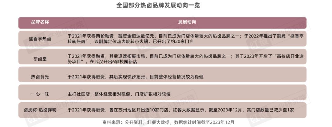 值得留意的是,热卤赛道曾于2021年经历过一轮融资热潮,盛香亭热卤、研卤堂、热卤食光、卤虎将·热卤拌饭等品牌均在当年获得资本的青睐,其后积极拓展市场。