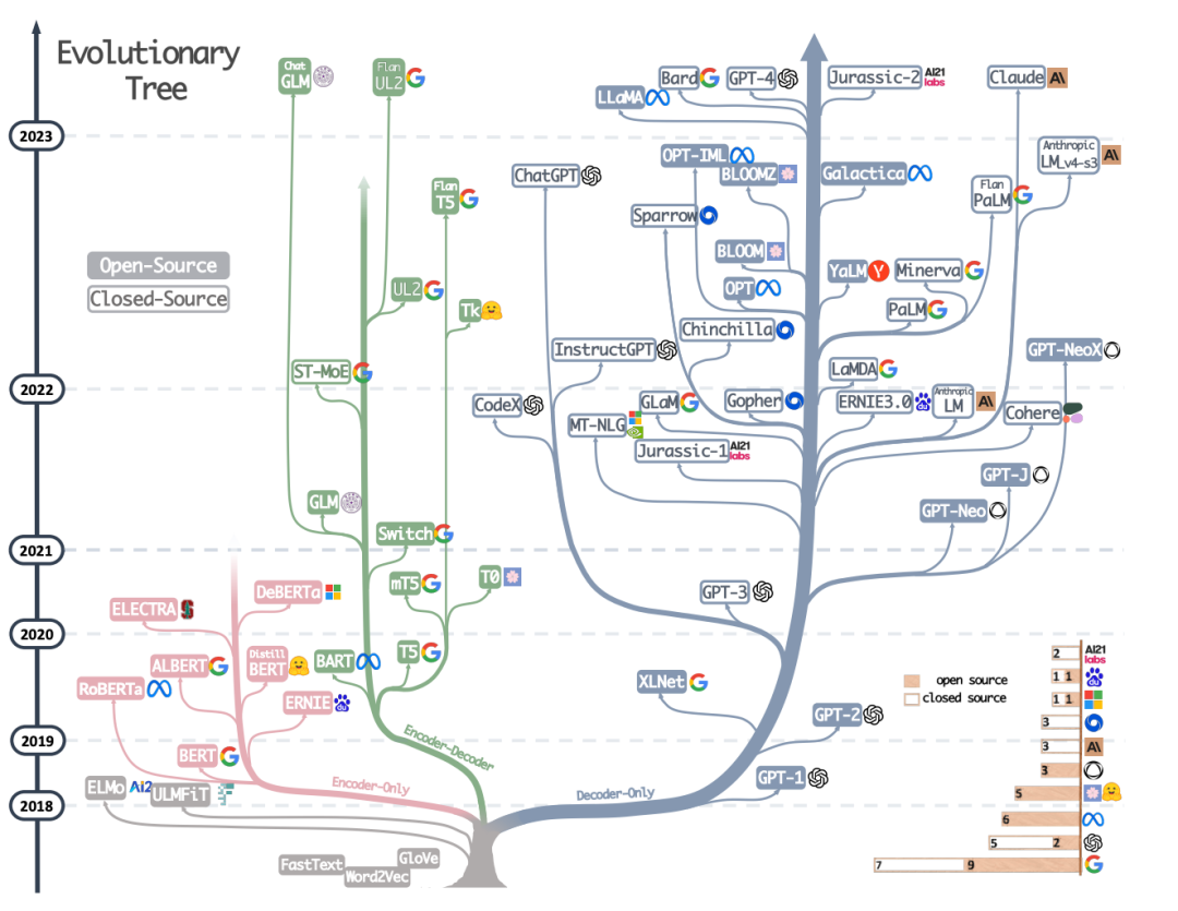 大模型进化树,其中 GPT 系列枝繁叶茂。图片来自Github,作者Mooler0410