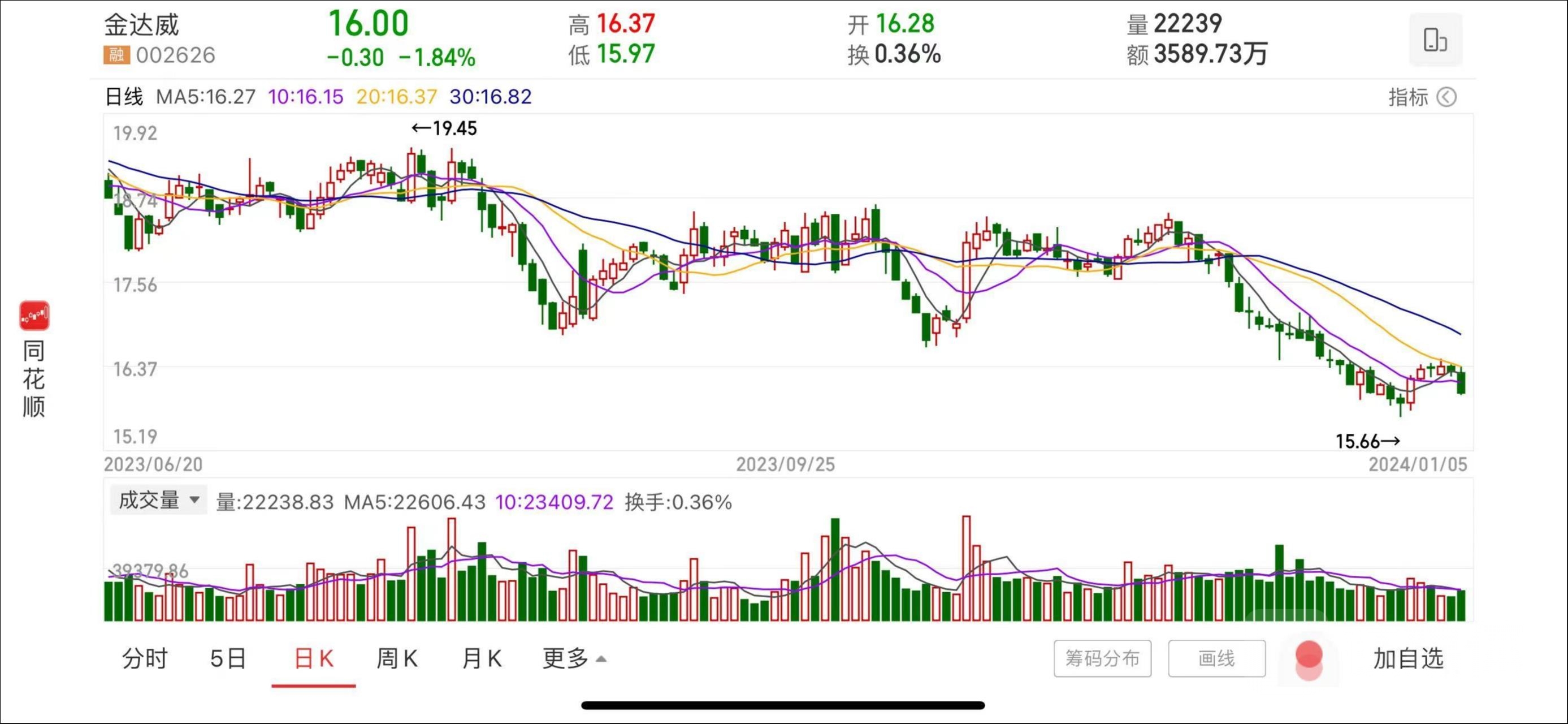 二级市场方面,截至1月5日收盘,金达威股价报收16元,跌幅1.84%,当前总市值为97.59亿元。