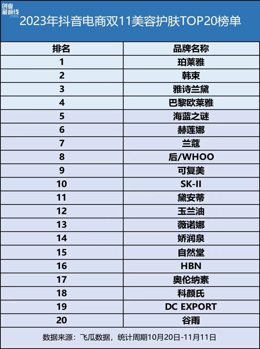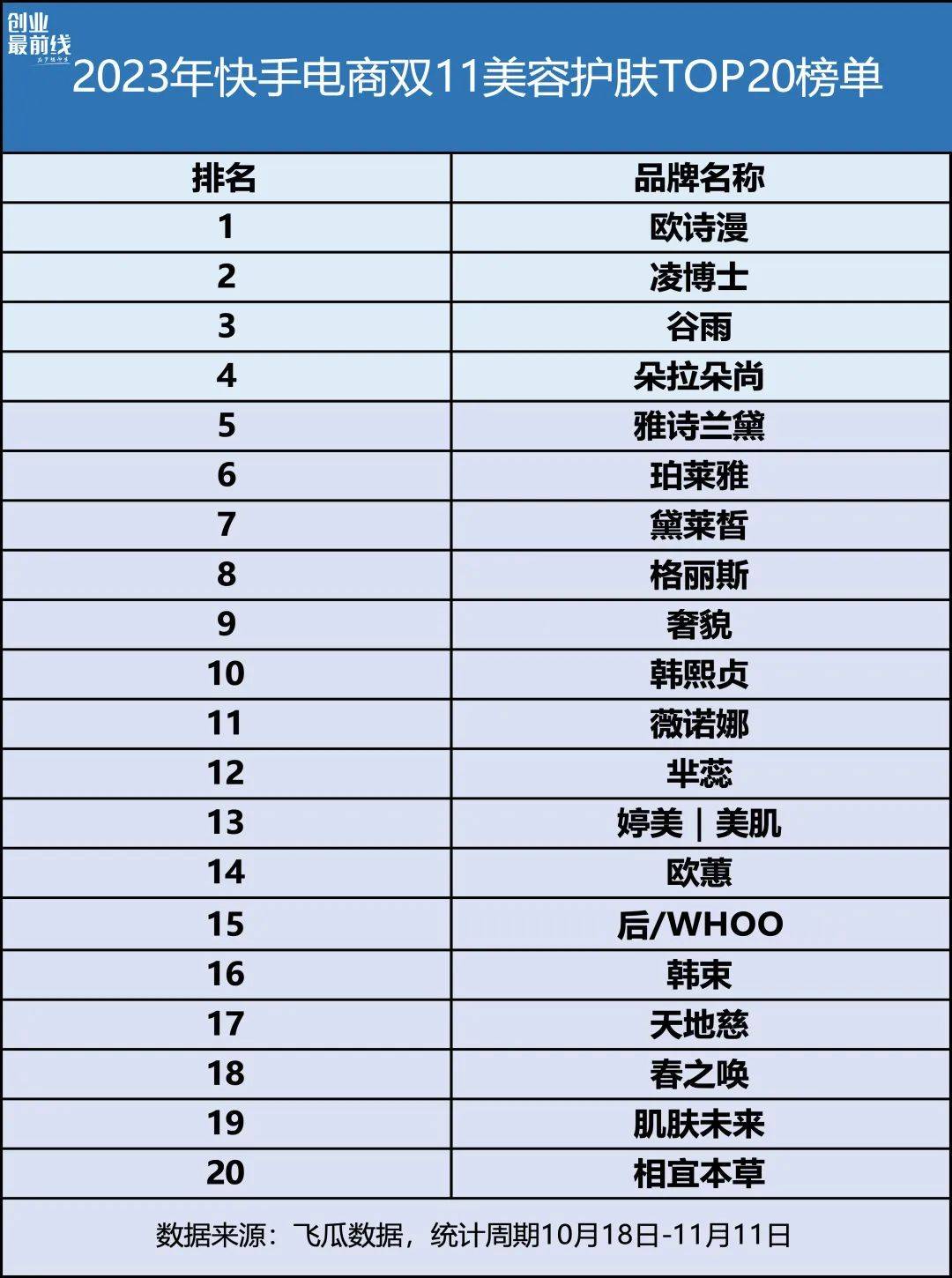 2023年快手电商双11美容护肤榜单,谷雨较2022年提升7个名次,上升至第三位。而抖音的美容护肤榜单中,谷雨2022年和2023年都稳居前20位。