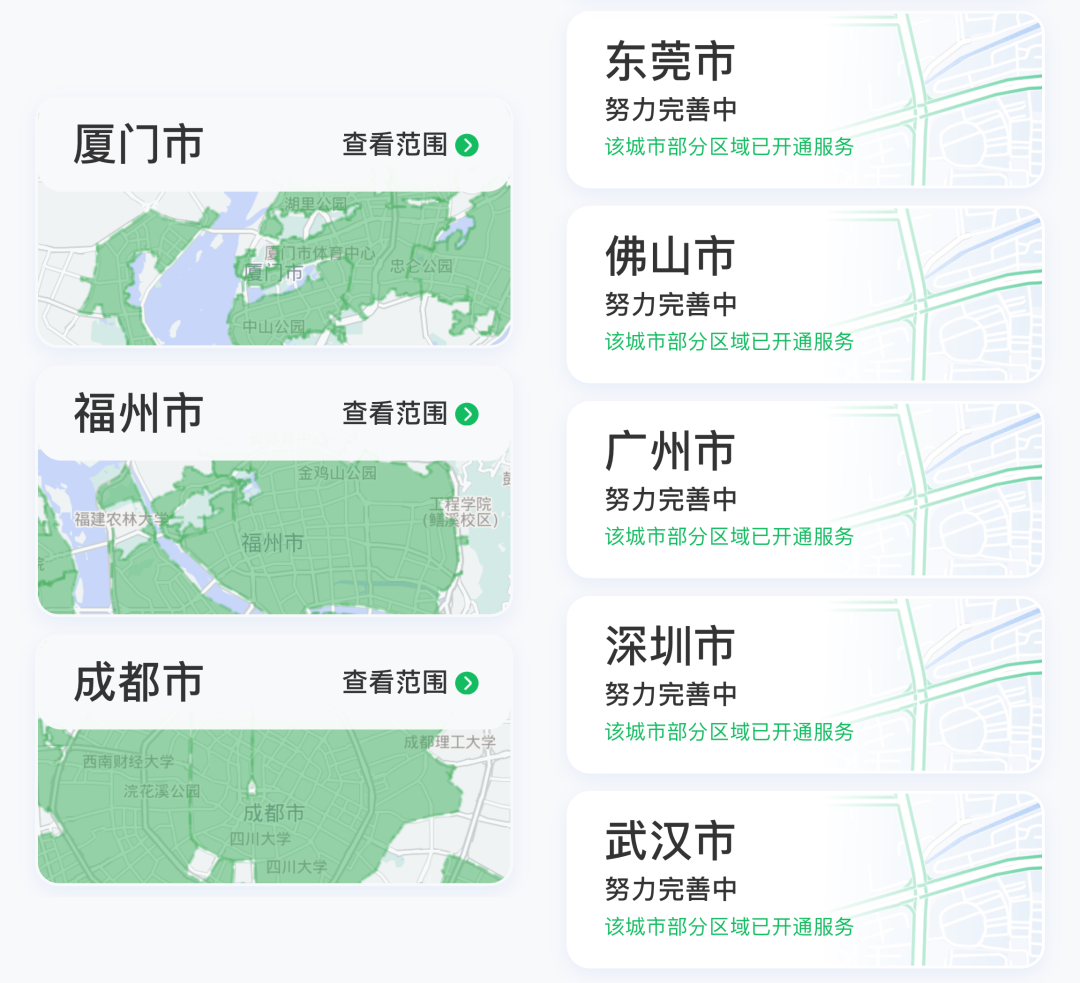 配送环节上,如果订单量难以摊薄配送成本,就宁愿不要开通即时配送服务。目前,朴朴超市只有福州、厦门和成都提供全城配送,其余地区都只是小范围试点。