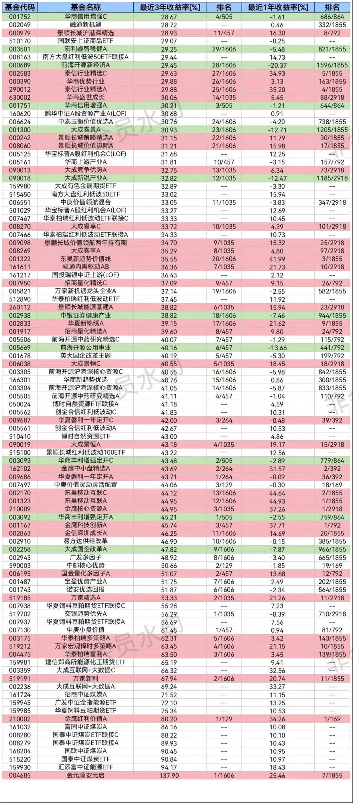 与5年期长期业绩形成对照,公募基金3年期中期业绩与短期业绩呈现出了正相关的关系。海通证券数据显示,最近3年收益率前1%的95支基金中,收益率最高的是金元顺安元启,收益率为137.9%;收益率最低的是华商信用增强C(001752),收益率也有28.67%。