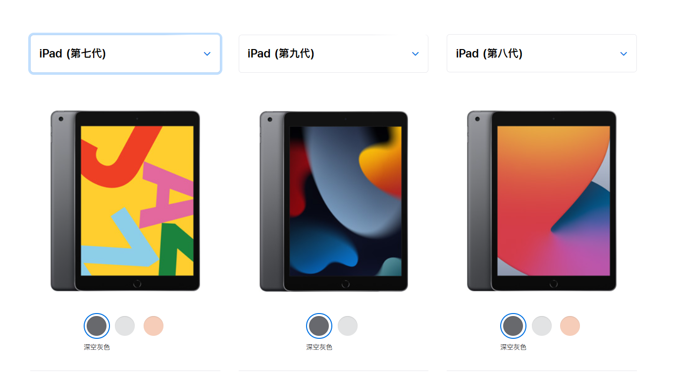 不多说了,你们就看看iPad 7、iPad 8和iPad 9这三代产品完全套皮的产品设计理念。